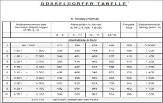 Die Höhe des Kindesunterhalts lässt sich der Düsseldorfer Tabelle entnehmen: